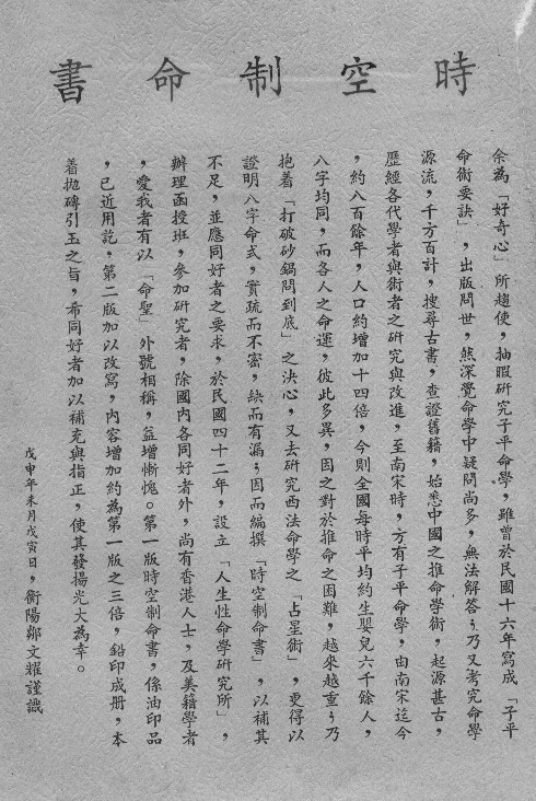 鄒教授研天文、通易理,為40~60年代活躍於台灣之命相學大師,並創立台灣省台北市人生性型學社(今社團法人中華民國星相學會)。根據日本五行學研究所所制定之「五行學歷史年表:中國篇」,「人生性命學研究所」之創立與「子平命學考證」和「時空制命書」的完成均為中國五行學歷史上的重大事件。